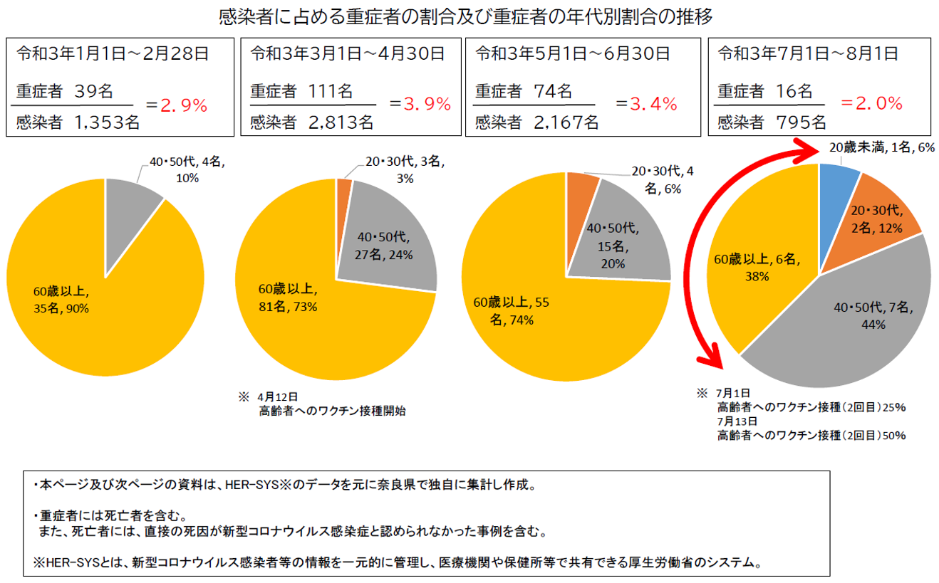 ・高齢者へのワクチン接種が進んだ7月以降は重症者に占める60歳以上の方の割合が大きく減少しています。