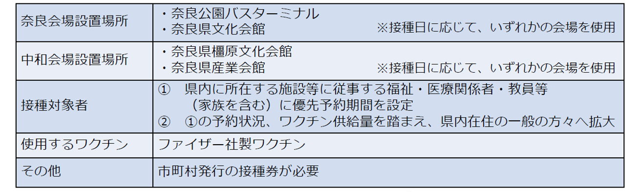 【広域ワクチン接種会場(奈良会場・中和会場)の概要】