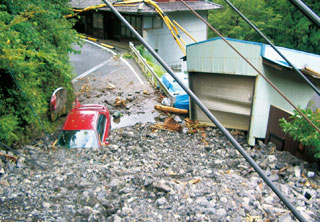 | 台風12号により、13市町村で土砂崩れや土石流などの土砂災害が発生するなど、県内では南部や東部を中心に深刻な被害に見舞われました。また、水道や電気、電話などのライフラインが途絶し、十津川村などへ通じる国道168号も通行不能となる中、警察・消防・自衛隊・地域住民等による救出・救助活動が行われました。とりわけ、県南部の五條市大塔町、天川村、十津川村では、死者11人、行方不明者13人(10月16日現在)の人的被害が発生しました。 | ||