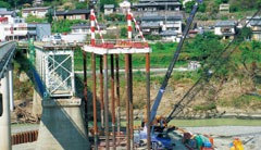 ![]() 落橋した折立橋の国による復旧工事(10月12日) |