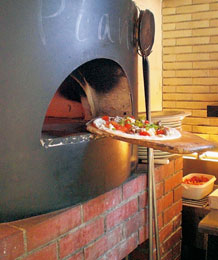 ピアノをモチーフにした外観が印象的な同店。薪釜(まきがま)で焼くナポリピッツアや、奈良産食材を使ったイタリア料理などを夜遅くまで楽しめます。
