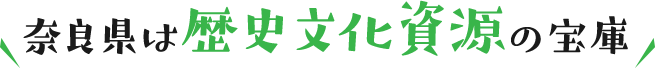 かつては日本の政治・経済・文化の中心を担い「飛鳥・藤原の宮都」「平城京」が営まれ、その後も豊かな歴史と共に歩んできた「いにしへのならの都」奈良県。奈良県には、国宝や重要文化財などに代表される豊かな歴史文化資源が数多く分布しています。また世界遺産も、日本全国の登録件数26のうち、3件が奈良県(「法隆寺地域の仏教建造物」、「古都奈良の文化財」、「紀伊山地の霊場と参詣道」)に位置するほか、「飛鳥・藤原の宮都」も世界遺産登録に向けて、ユネスコへ推薦書を提出しました。まさに奈良県は世界に誇る歴史文化資源の宝庫と言えるでしょう。