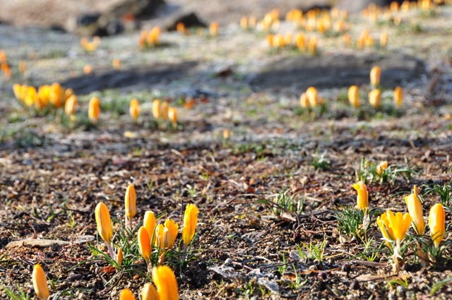 馬見花だより 2月28日号 よく晴れた朝 上池に水鳥が集まっています 水分(みくまり)広場に クロッカスが咲き始めています サンシュユの蕾も大きく なってきました (中央エリア/上池) (中央エリア/水分広場四阿周辺) (中央エリア/だんだん広場横) 梅林もぽつぽつと 咲き始めています 紅梅が先のようです 全体では三分咲き程度 バラ園で足もとに 光る物を見つけました (中央エリア/梅林) (中央エリア/梅林) (中央エリア/花の道) 霜柱でした 子供の時を思い出します 緑道で黄色い花を付けている 木を見つけました マンサクの花でした ようやく春を告げる花々が 咲き始めました (中央エリア/梅林) (緑道/町道の交差点付近) (緑道/町道の交差点付近)