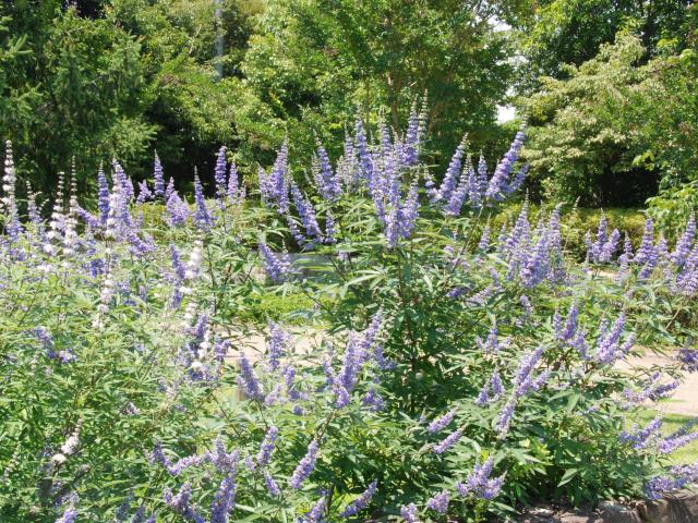 馬見花だより6月27日 セイヨウニンジンボクが涼しげな青い花をたくさん付けています。海外では薬用として栽培されています。近くに白い花もあります。 「睡蓮の池」でスイレンが咲き続けています。以前紹介した時は白い花ばかりでしたが、今回は黄色い花の方が多くなっていました。 「花の道」でロシアンセージが咲き始めました。ロシアが原産のように思えますが、原産はアフガニスタン周辺の国々です。 (花の道/中央エリア) (睡蓮の池/中央エリア) (花の道/中央エリア)