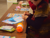 中島先生による食器用洗剤を使った水質実験と、アクリルタワシの編み方講座。