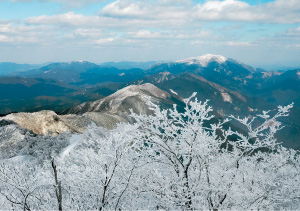 冬の山々では氷の芸術といえる霧氷が見られます。