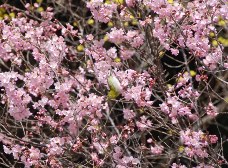 馬見花だより3月24日【桜開花情報】 サンシュユが満開になりました。江戸時代に薬用植物として渡来しました。 「流れのある坂道」でモクレンが咲き始めました。花が大きいので見応えがあります。 「睡蓮の池」横の石積みの上で、コスミレが咲いていているのを見つけました。 (睡蓮の池近く/中央エリア) (流れのある坂道/中央エリア) (睡蓮の池近く/中央エリア) カワヅザクラ(写真)は見頃の終盤となり、少し葉が出てきました。カンヒザクラは満開です。 「梅林」のケイオウザクラ(写真)が満開です。「水鳥と花の広場」近くのコヒガンは咲き始めです。 ソメイヨシノはまだつぼみです。開花までまだ少し時間がかかりそうです。 (春まちの丘/南エリア) (梅林/中央エリア) (睡蓮の池近く/中央エリア)