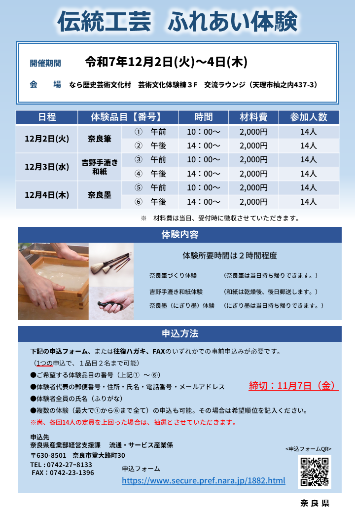 令和7年度「伝統工芸なら ふれあい体験」参加者を募集します