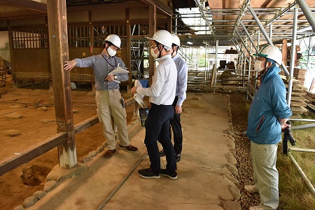 旧織田屋形の修理工事では、しっかりした基礎を設けるため、地面を掘り下げて、コンクリートの基礎を設けました。