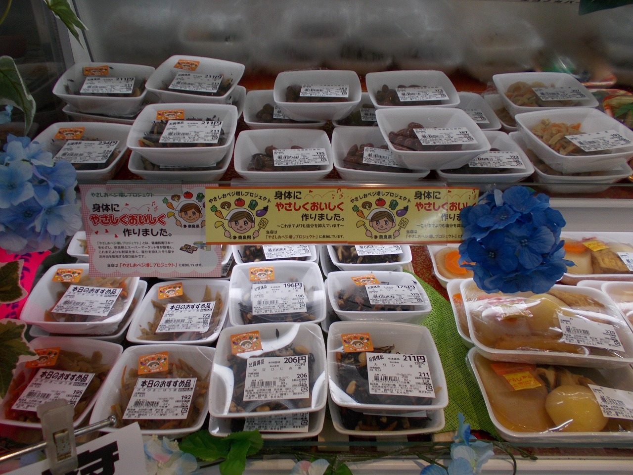 ヤマトー桜井南店では、「お惣菜の膳」と協働で、「大豆ひじき煮」と「ささがきごぼう煮」をやさしおベジ増しの惣菜として販売中