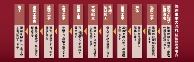 奈良県文化財保存事務所は、文化財所有者からの委託を受け、国宝、重要文化財などの文化財建造物の調査や修理を行っています。