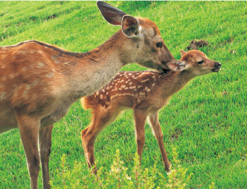 ●子ジカに近づいたり、触ったりしないでください。子ジカに人の匂いがつくと母ジカが育児放棄することがあります。また、母ジカが子ジカを守るために人に攻撃してくることがあります。