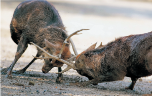 秋になり発情期を迎えたオス鹿は気が荒くなります。奈良公園などで、角のあるオス鹿を見かけたら、むやみに近づかないように気をつけてください。