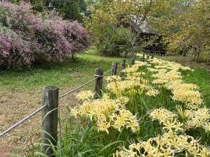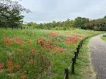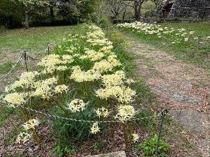 「水分広場」では白色の彼岸花が満開です。