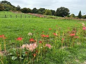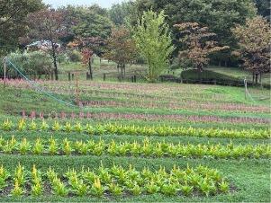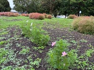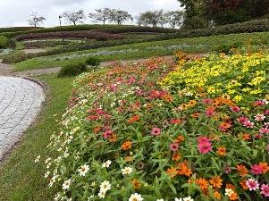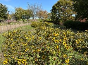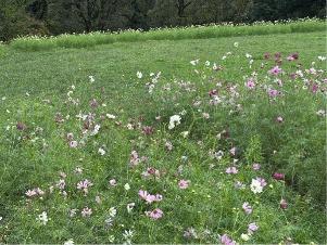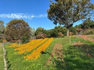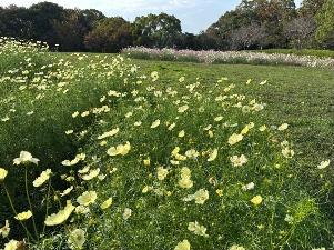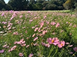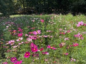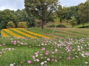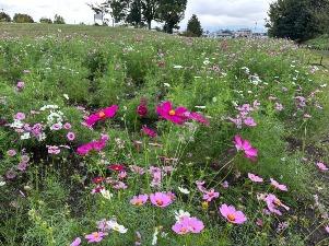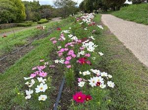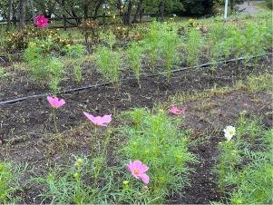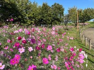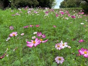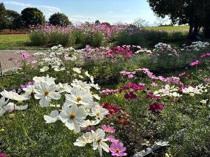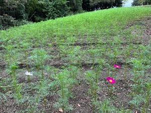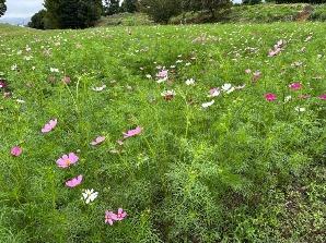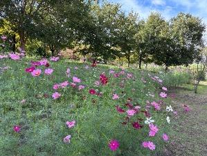 コスモスは「集いの丘」と「彩りの広場」「南花畑」で咲き始めました。