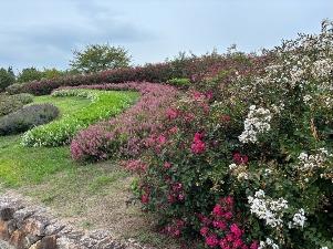 一才サルスベリとアンゲロニアとジニアは満開です。「馬見花苑/北エリア」