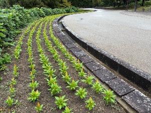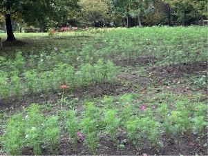 ケイトウは順調に育っています。「緑道/北エリア」「花の道/中央エリア」