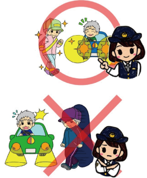 白や黄色などの明るい服装や、反射材を着用して目立つように心掛けましょう。