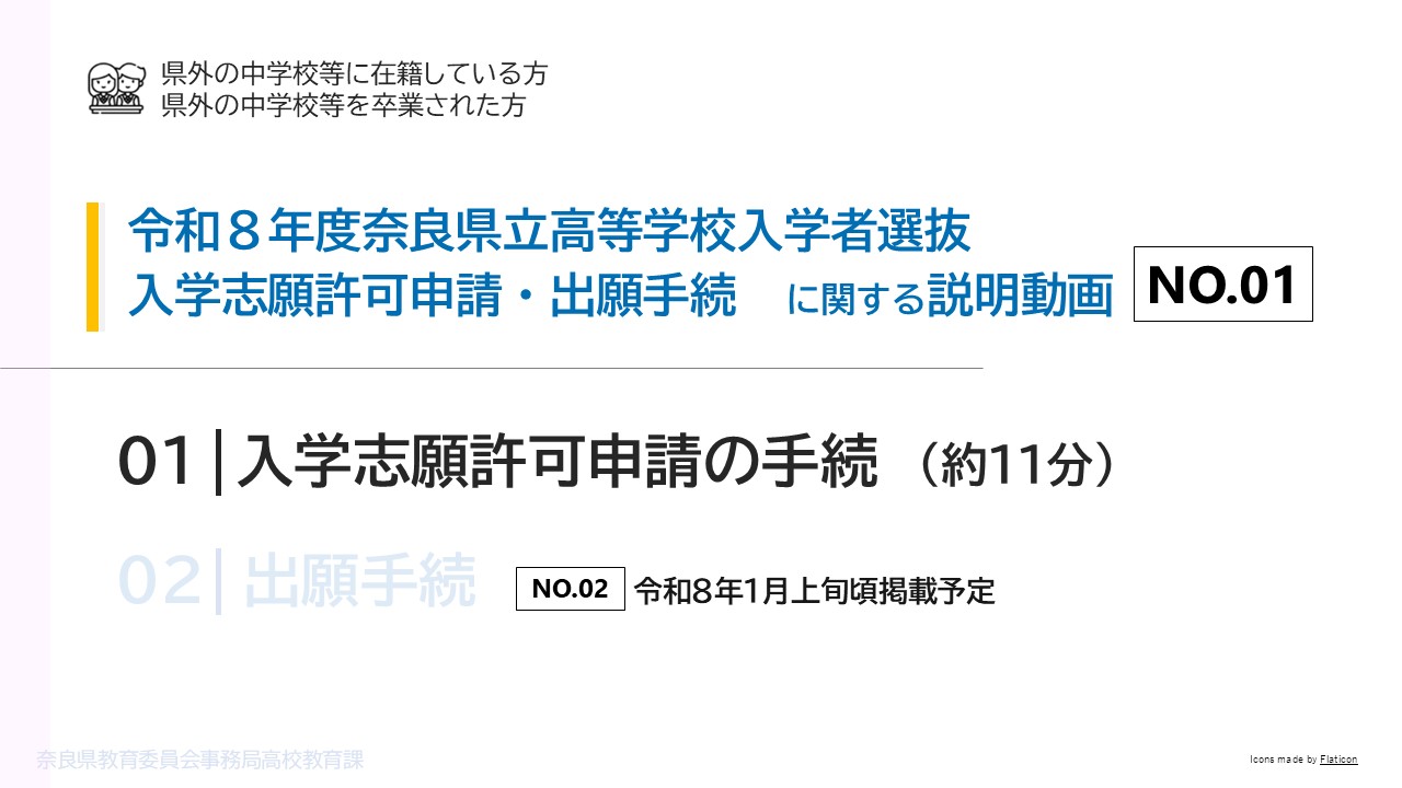 この動画では、奈良県外の中学校等を卒業した者(卒業見込みの者も含みます。)が、