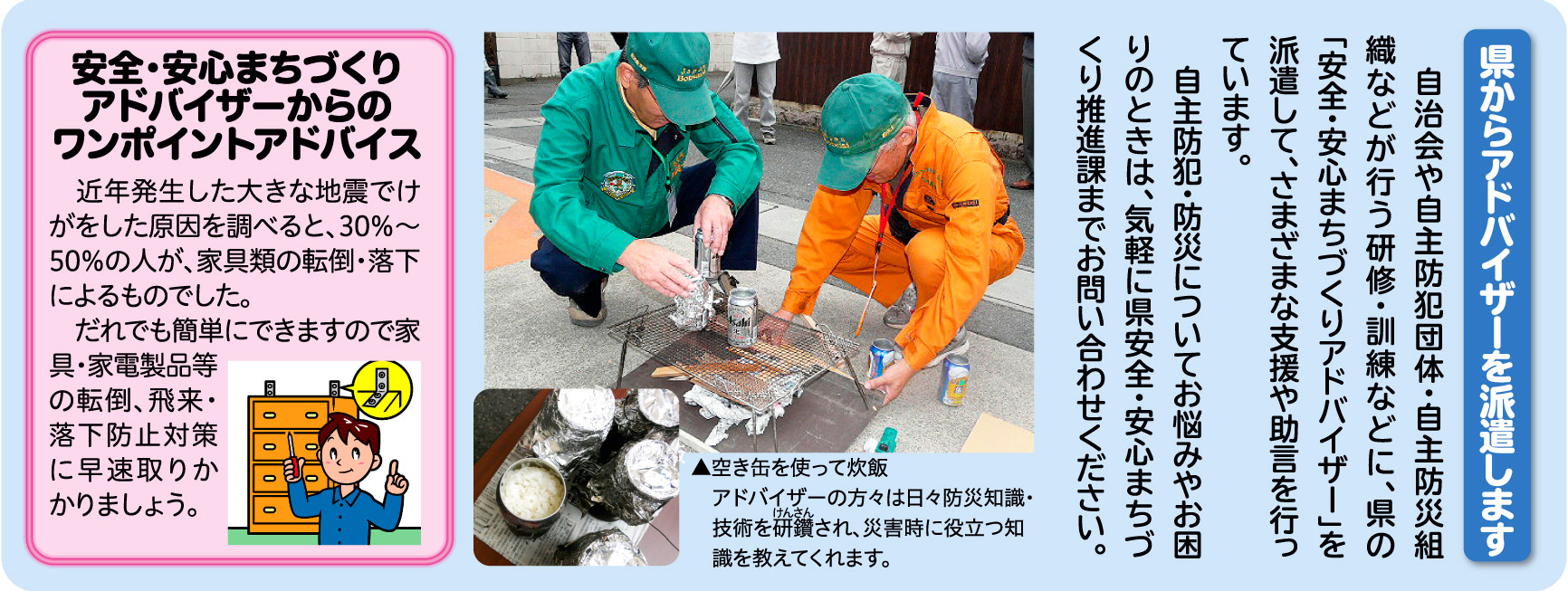 ▲百貨店の屋上での交通安全イベントのようす ▲交通安全サポート事業所での従業員向け安全運転講習会のようす ▲9月3日に行われた第1回交通安全サポート事業所懇談会。 有識者の講演・事業所による事例発表・グループ懇談を通じて、 効果的な地域貢献活動のノウハウを共有しました。 ▲今年度から地域防犯サポート事業所登録制度を立ち上げ、 11月12日に第1回登録証交付式を実施しました。 問 安全・安心まちづくり全般について 県安全・安心まちづくり推進課 TEL 0742-27-8576 FAX 0742-27-5280