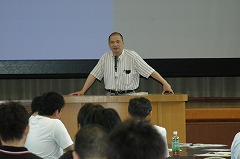 昼過ぎには上北山村に到着しました。講演 会場である上北山中学校では、最初に佐久総合病院の色平哲郎先生から診療所勤務経験に基づく地域医療への想いや、医師になる前の学生時代に培っておくべき ことについてお話いただきました。続いて、県立五條病院の中村達先生から「奈良県へき地医療研修プログラム」について説明いただきました。 その後、奈良 県立医科大学の藤本眞一先生の司会進行のもと、札幌医科大学の夏目寿彦先生に基調講演をしていただき、へき地医療における問題点の解決策を探るワーク ショップを行いました。