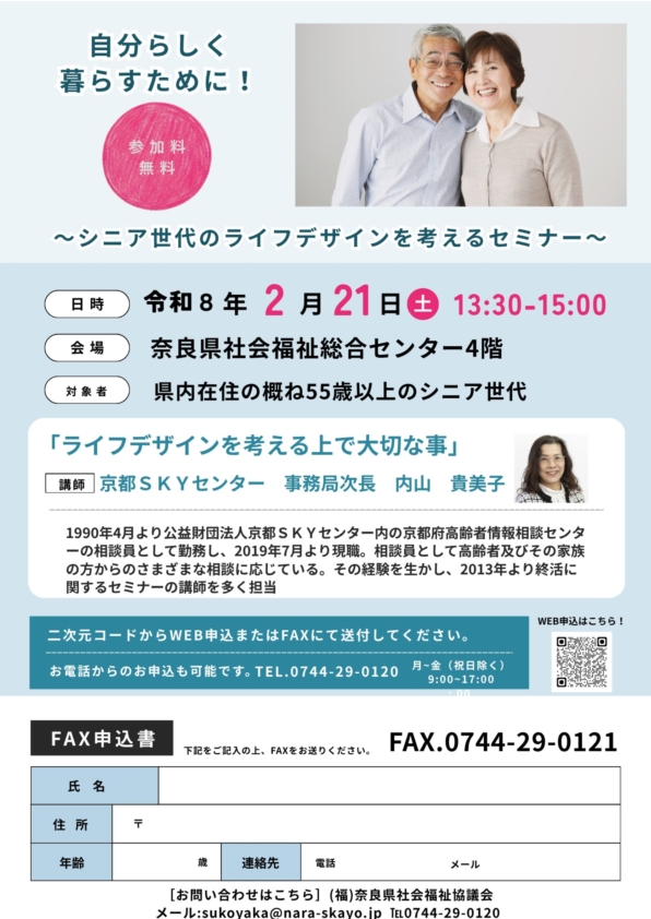 【申込・問い合わせ先】 社会福祉法人奈良県社会福祉協議会 すこやか長寿センター