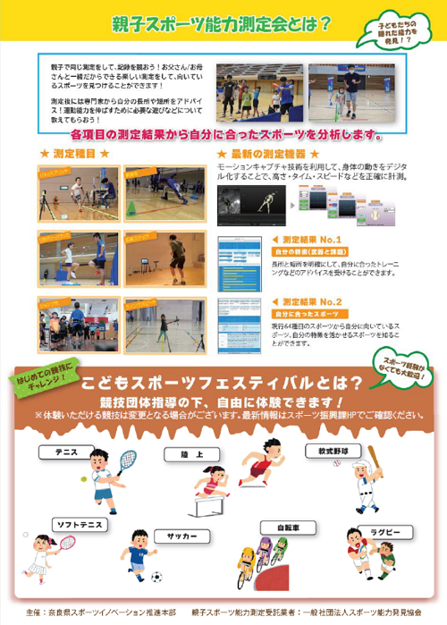 ・親子スポーツ能力測定会 → 県内在住の4歳(年中)~15歳(中学3年生)及びその保護者