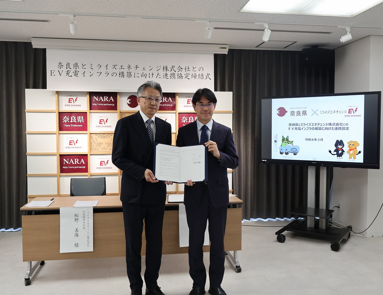 2026年3月9日 EV充電インフラの構築に向けた連携協定式 ミライズエネチェンジ株式会社との「EV充電インフラの構築に向けた連携協定」を締結しました。本協定締結を契機に、県有施設・宿泊施設等へのEV普通充電器の導入による県内のEV充電インフラの充実を図るとともに、イベント等を通じたEVの普及促進等に取り組みます。 資料はこちら 2026年3月9日
