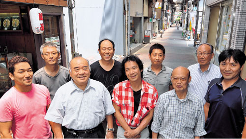 楽しい商店街を目指す振興協議会の皆さん。「人情あり、芸術あり、ホッとくつろげる懐かしさあり。