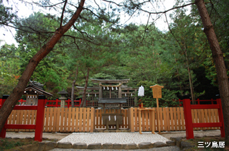 大神神社の摂社であり、本殿を持たず三輪特有の三ツ鳥居の前で拝する。